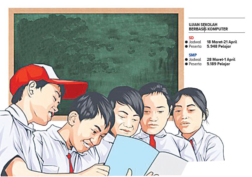 Diakuinya, masih ada beberapa sekolah yang kekurangan komputer. Namun hal itu sudah tidak ada masalah. Sebab kekurangannya akan dipinjamkan dari sekolah lain. Apalagi ujian pelajar setingkat SD dan SMP tidak bersamaan.