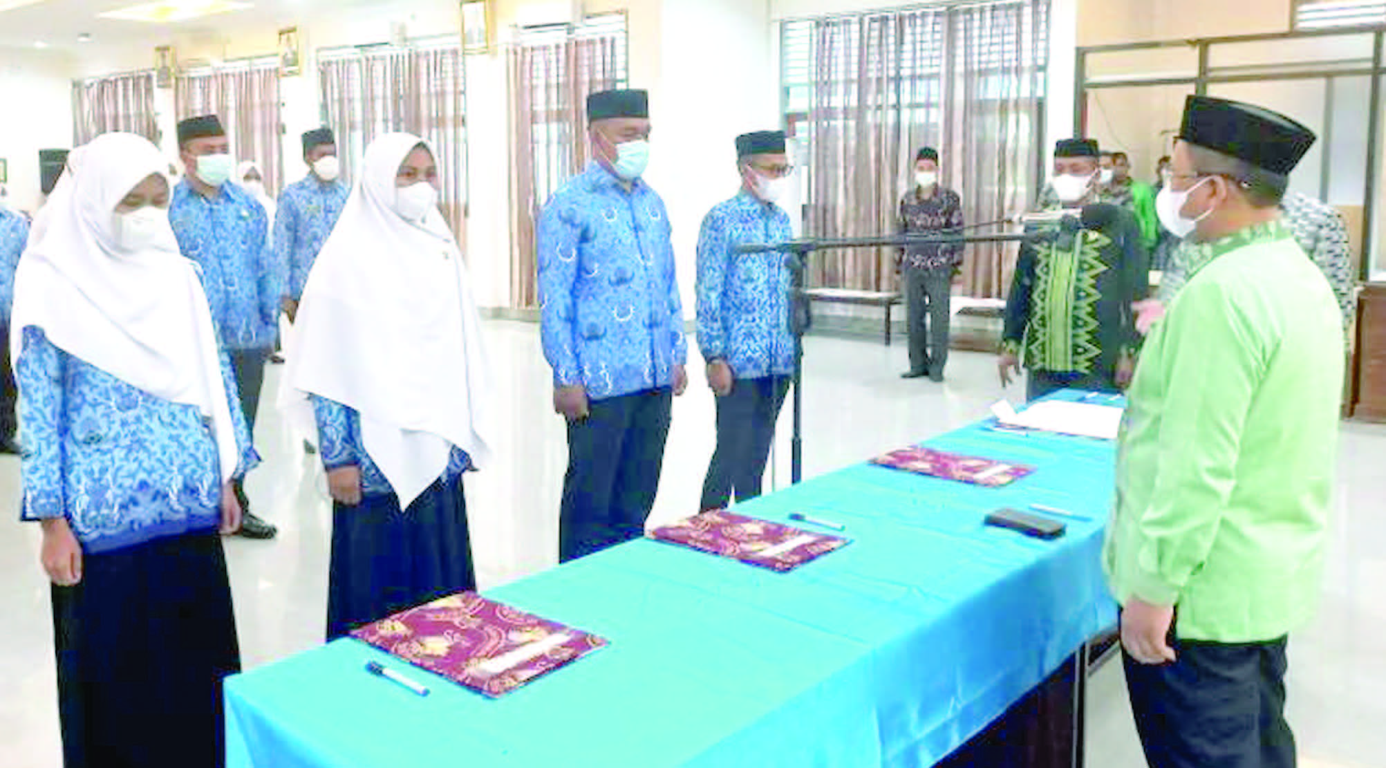 KENDARINEWS.COM — Aparatur Sipil Negara (ASN) di lingkup Kantor Wilayah (Kanwil) Kementerian Agama (Kemenag) Sultra diminta untuk menjaga integritas dan tak menjadi provokator. Abdi negara harus bisa memberi solusi dalam setiap masalah. Pernyataan itu disampaikan Kepala Kemenag Sultra H. Zainal Mustamin saat melantik dan menyumpah 32 ASN yang lulus seleksi CPNS tahun 2021, kemarin (4/1) di Aula Kemenag Sultra.