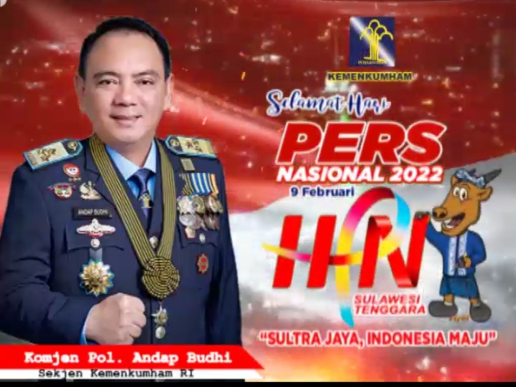 “Selamat Hari Pers Nasional Tahun 2022. Sultra Jaya Indonesia Maju,” ujar Komjen Pol. Andap Budhi Revianto, Sekretaris Jendral (Sekjend) Kementerian Hukum dan Hak Asasi Manusia (Kemenkumham) Republik Indonesia kepada kendarinews.com, Rabu (9/2/2022).