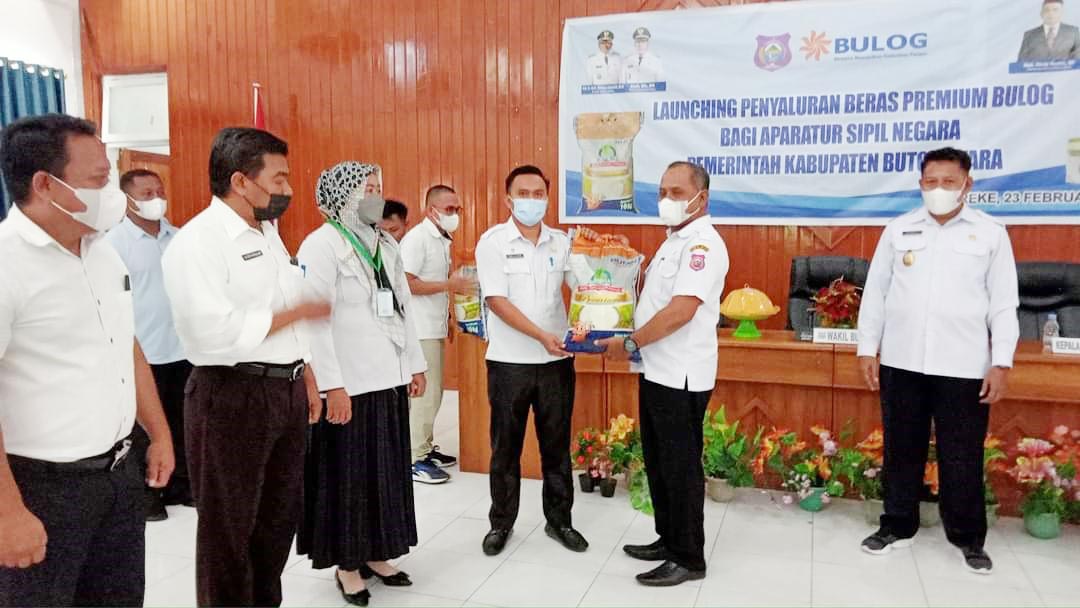 KENDARINEWS.COM — Pemerintah terus memerhatikan kesejahteraan Aparatur Sipil Negara (ASN) di Kabupaten Buton Utara (Butur). Tak hanya memberikan gaji dan tunjangan tambahan penghasilan yang layak, ASN yang bertugas di daerah berjuluk Lipu Tinadeakono Sara itu mendapatkan bantuan beras premium dari Badan Urusan Logistik (Bulog). Wakil Bupati Buton Utara, Ahali, mengungkapkan, penyaluran beras bantuan untuk ASN tersebut merupakan bentuk perhatian pemerintah untuk abdi negara dalam menjalankan tugas mewujudkan visi dan misi kepala daerah. Tak hanya gaji yang layak dan tunjangan tambahan penghasilan. Pemkab Butur dan Bulog berkomitmen memberikan bantuan beras.