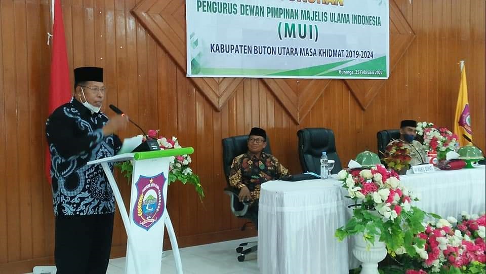 KENDARINEWS.COM — Pengurus Majelis Ulama Indonesia (MUI) Kabupaten Buton Utara (Butur) resmi dikukuhkan. Wakil Bupati Butur, Ahali, yang hadir dalam seremoni tersebut berharap, MUI dapat terus berkontribusi menjaga kerukunan umat beragama. “Pengukuhan pengurus MUI Kabupaten Butur ini merupakan momentum yang sangat strategis bagi terbangunnya hubungan harmonis intern umat Islam dan antar umat beragama, termasuk umat Islam dengan Pemerintah dalam mewujudkan pembangunan di daerah,” ujar Ahali, di aula Bappeda, Jumat (25/2).