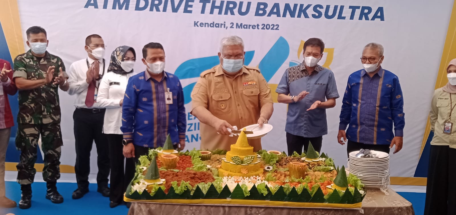 KENDARINEWS.COM–Hari Ulang Tahun (HUT) ke 54 tahun, Bank Sulawesi Tenggara (Sultra), berlangsung khidmat. Kegiatan yang mengusung tema create amizing performance ini, dirangkaikan dengan launcing ATM Drive THRU yang diresmikan langsung oleh Gubernur Sultra Ali Mazi, bertempat di kawasan eks MTQ Kendari, Rabu (2/3).