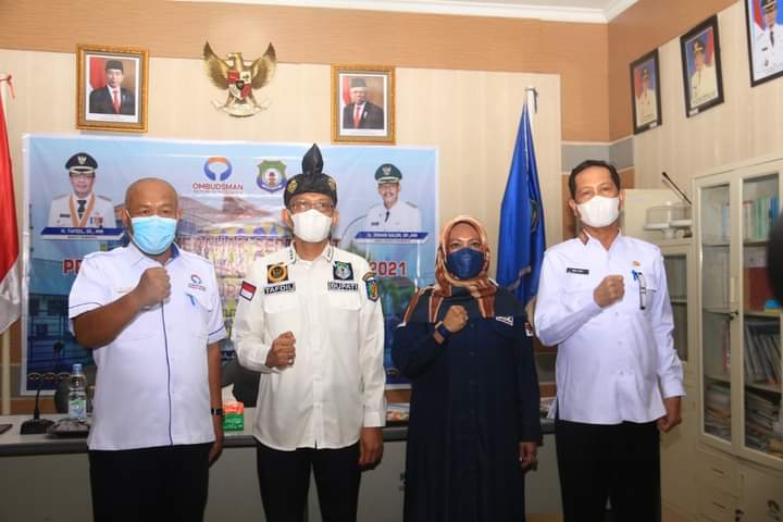 Piagam penghargaan diserahkan langsung oleh Kepala Ombudsman RI Perwakilan Sultra, Mastri Susilo kepada Bupati Bombana Tafdil yang didampingi anggota DPD RI daerah pemilihan (dapil) Sultra Andi Nirwana Sebbu, Sekretaris Daerah (Sekda) Man Arfah dan jajaran pejabat lingkup Pemkab Bombana di ruang rapat Bupati, Rabu (2/3).