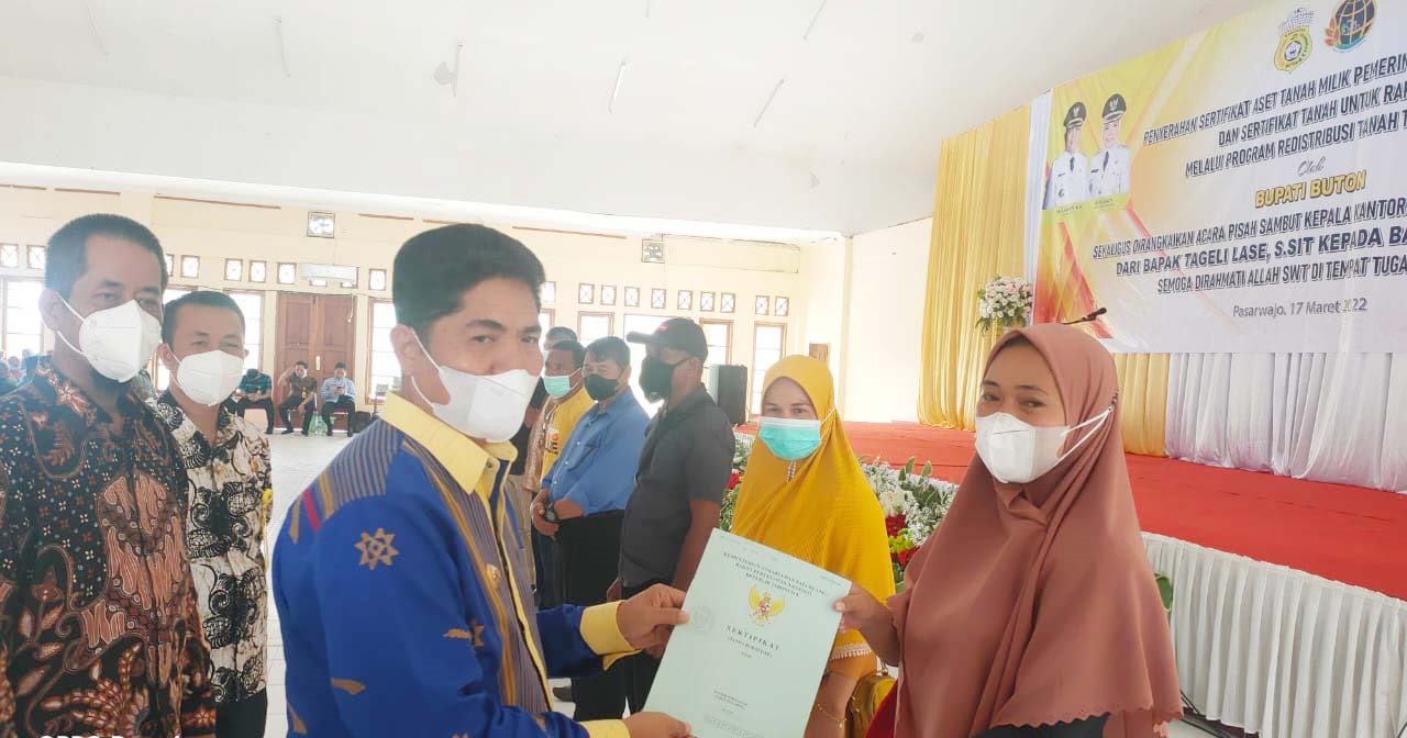 “Apresiasi kepada BPN Buton dan Pemkab yang telah membangun sinergi sehingga program redistribusi tanah berjalan dengan lancar dan sukses,” katanya. Sama dengan Bupati La Bakry, pihak BPN juga berpesan agar sertifikat tanah itu disimpan baik-baik agar tidak hilang. “Jika akan digunakan sebagai agunan di Bank jangan dijadikan konsumtif, namun untuk usaha. Bedakan mana kebutuhan dan keinginan,” pungkasnya.