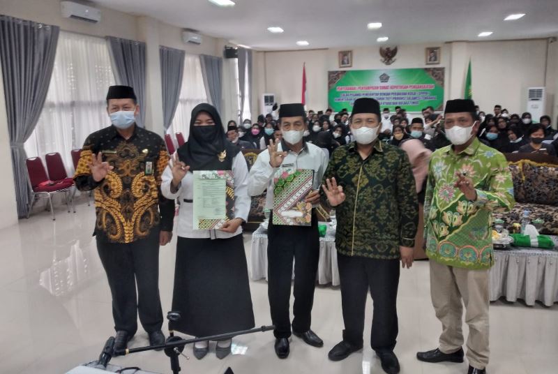 Penyerahan SK dilaksanakan di Aula Kemenag Kolaka, Jumat (01/04/2022). Seremoni penyerahan juga dilaksanakan secara virtual yang terhubung langsung dengan Kantor Kemenag Pusat.