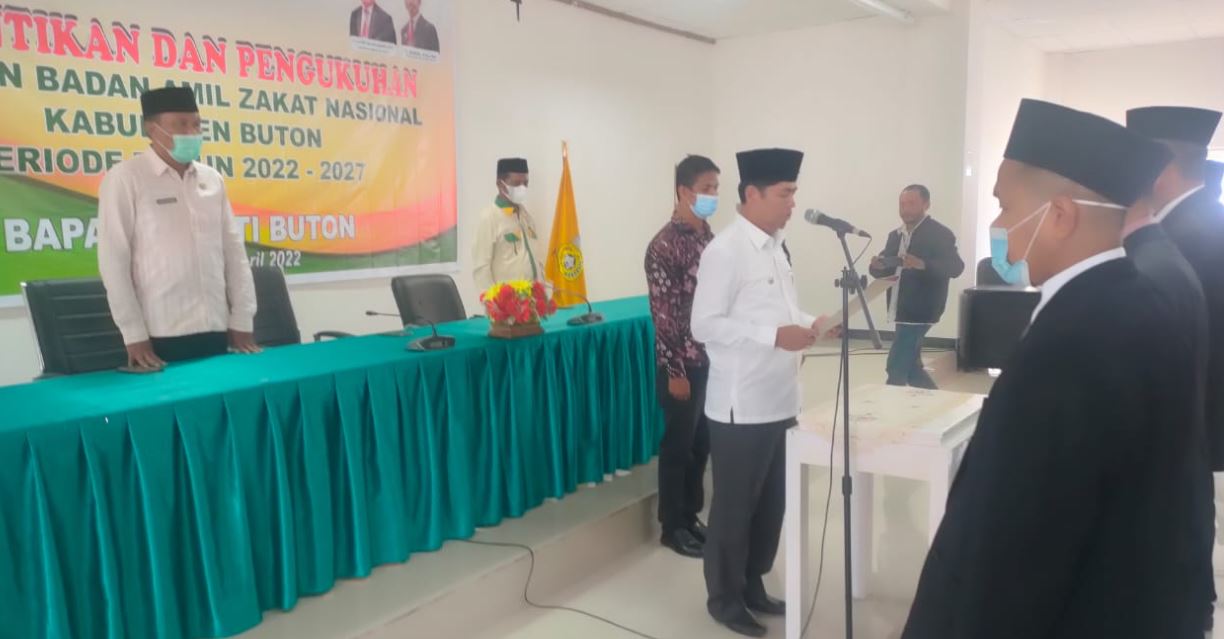 KENDARINEWS.COM –Bupati Buton La Bakry melantik 5 orang pimpinan Badan Amil Zakat Nasional (Baznas) Kabupaten Buton di aula kantor Sekretariat Pemkab Buton. Turut hadir menyaksikan seremoni itu Sekda Buton La Ode Zilfar Djafar dan Kepala Kemenag Buton H. Mansur.