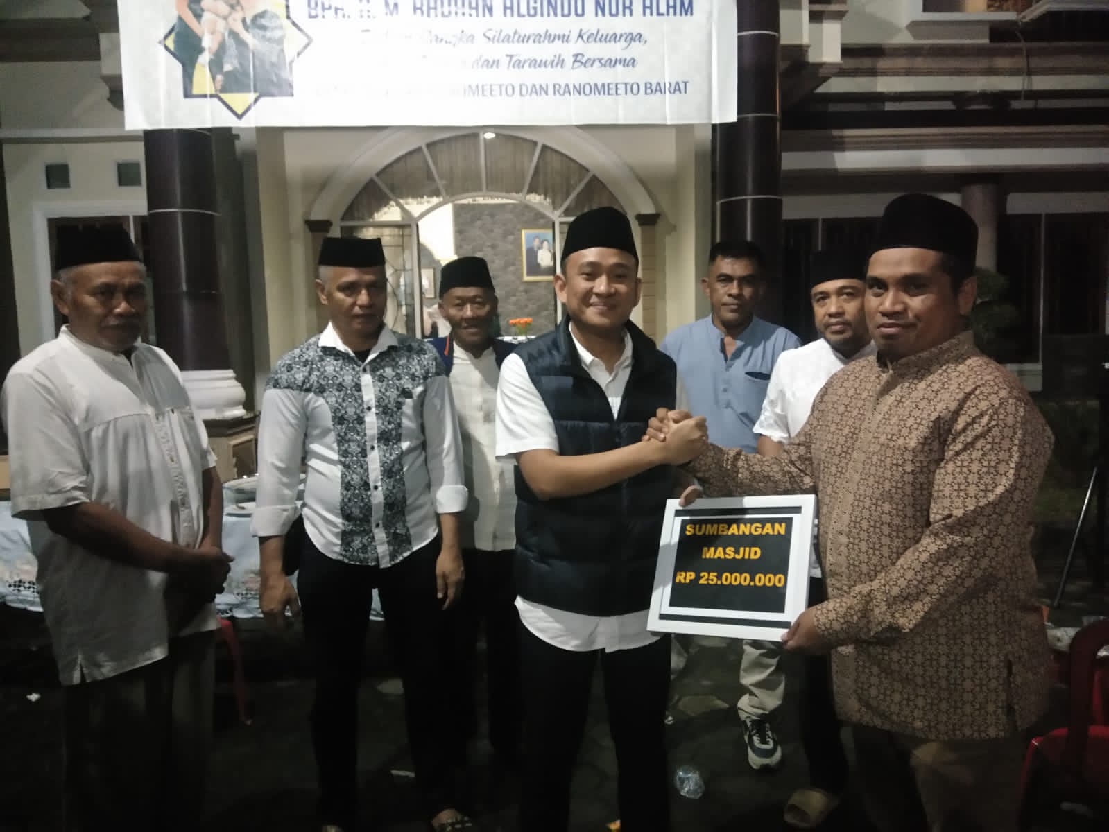 Dikesempatan itu pula, Radhan kembali menyalurkan sejumlah bantuan dana untuk pembangunan masjid di tiga Masjid di wilayah Kecamatan Ranomeeto sebesar total Rp 75 juta. Adapun rinciannya yakni di Masjid Kecamatan Rp 25 Juta, di Masjid Desa Langgea Rp 25 Juta, dan Masjid Desa Kota Bangun Rp 25 Juta.