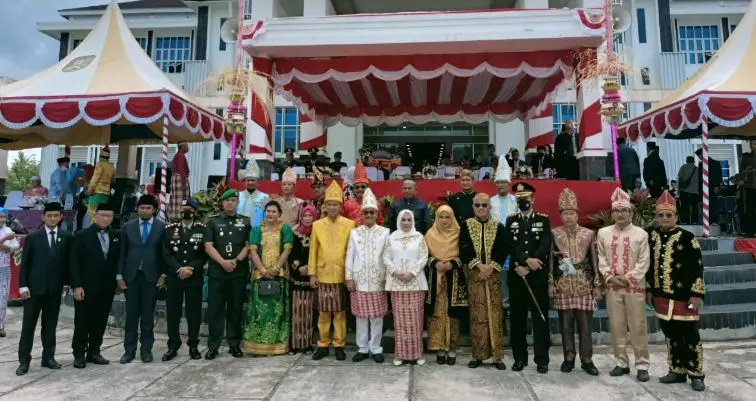 Tak hanya Bupati Surunuddin, wakilnya Rasyid juga mengenakan pakaian adat. Pakaian yang dikenakan dari adat jawa didominasi warna hitam lengkap dengan blankonnya.