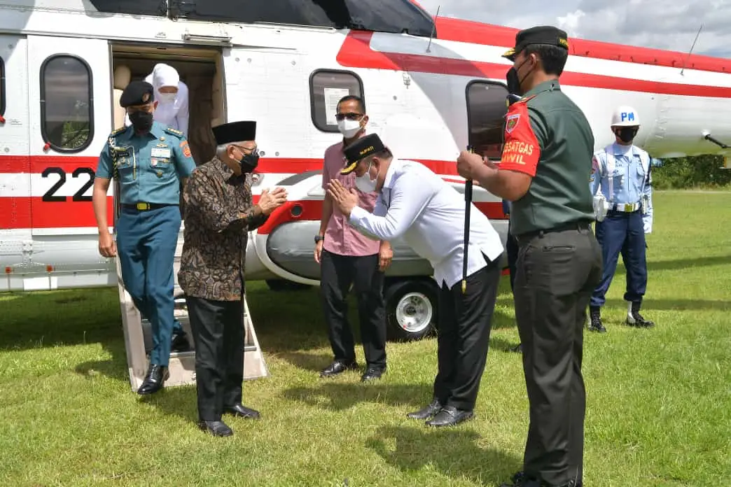 KENDARINEWS.COM — Wakil Presiden RI Ma’ruf Amin melakukan kunjungan ke Konawe Utara, Kamis (19/5). Kunjungan tersebut dalam rangka peletakan batu pertama kawasan industri PT. Nusantara Industri Setia (NIS) di Desa Motui, Kecamatan Motui, Konawe Utara. Kedatangan Wapres RI Ma’ruf Amin disambut langsung oleh Bupati Konawe Utara Ruksamin.
