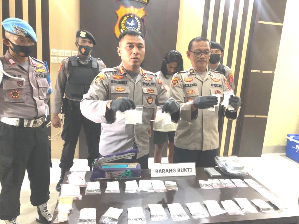 “Barang bukti lainnya yang turut disita 2 unit handphone, timbangan digital besar dan kecil, 1 unit alat pres plastik, 7 ball plastik bening, tas hitam, dan kardus tempat handphone,” jelas Kombes Pol Muh.Eka Fathurrahman.