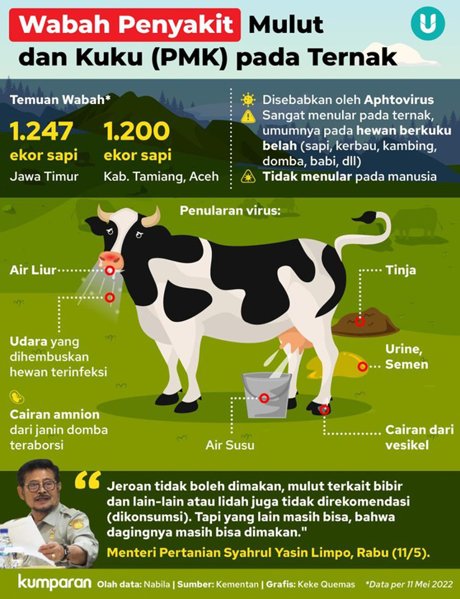 Di sisi lain, media turut membantu mengedukasi masyarakat. Saat ini, pemerintah akan melakukan langkah penanganan lebih lanjut terkait wabah penyakit tersebut.”Kami juga akan segera berkoordinasi dengan pihak terkait dalam upaya penanganan wabah PMK,” katanya. (kn)