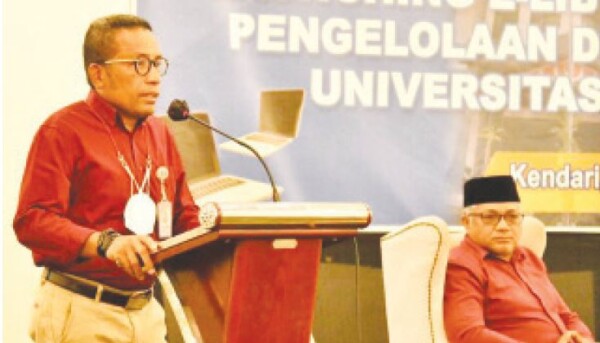 KENDARINEWS.COM — Salah satu upaya untuk meningkatkan minat baca warga kampus hijau di era digitalisasi, Rektor Universitas Halu Oleo (UHO), Prof Dr Muh Zamrun Firihu, S. Si., M.Si., M.Sc., meluncurkan Electronic Library (E-LIB) di Balroom Same Hotel Kendari, kemarin (31/8). Peluncuran E-LIB ini dirangkaikan dengan Workshop pengelolaan digital library. Saat ditemui, Prof Zamrun mengatakan hal pertama yang dilakukan adalah bagaimana semua sistem layanan di UHO bisa berbasis teknologi informasi atau digital baik penerimaan mahasiswa baru, pendaftaran, verifikasi berkas hingga bahan pustaka di UHO. “Sejak periode pertama menjabat, saya menginginkan semua sistem layanan akdemik maupun nonakademik berbasis digital. Salah satunya, bahan pustaka yang ada di UHO, seperti buku teks, kamus maupun jurnal. Sehingga bahan-bahan pustaka tersebut dapat diakses dimanapun kita berada,” terang Rektor UHo dua periode ini, Rabu (31/8).