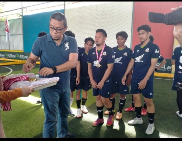 KENDARINEWS.COM—Direktur Kendari Pos, Irwan Zainuddin menutup kegiatan tahunan Futsal Liga Media VII 2022 kerjasama Kendari Pos-UHO di lapangan futsal Garuda, Sabtu (17/12).