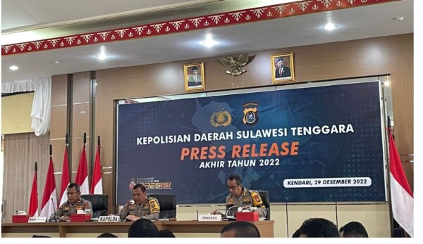 KENDARINEWS.COM–Kepolisian Daerah Sulawesi Tenggara (Polda Sultra) menggelar Press Release akhir tahun, bersama rekan-rekan dari media cetak, elektronik, dan online mitra Polda Sultra yang bertempat di Aula Dachara, Kamis (29/12/2022).
