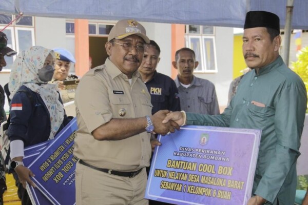 KENDARINEWS.COM — Penjabat Bupati Bombana, Ir. Burhanuddin kembali menyerahkan sejumlah paket bantuan ke masyarakat Kecamatan Masaloka Raya. Bantuan tersebut berupa bibit tanaman hortikultura sebanyak 5 paket, satu unit mesin perajan rumput laut yang diserahkan untuk kelompok nelayan Cumi-Cumi, serta bantuan Cool Box sebanyak 30 unit hingga bantuan secara pribadi berupa uang tunai untuk rumah Ibadah di Masaloka, kemarin.