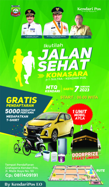 KENDARINEWS.COM– Panitia pelaksanaan jalan sehat Konsara Go to Sultra yang diinisiasi Kendari Pos siap menggelar hajatan Sabtu (07/1) tepat pukul 06.00 wita. Persiapan jalan sehat sudah mencapai 98 persen.