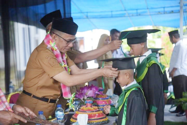 KENDARINEWS.COMD — Para santri dan tahfidz Alquran binaan sembilan Penyuluh Agama Islam non PNS di Kecamatan Kapontori, baru saja diwisuda. Pj. Bupati Buton, Basiran bersama Sekretaris Kabupaten (Sekab), Asnawi Jamaluddin, turut menghadiri seremoni penamatan tersebut. Tercatat ada 186 santri dan enam tahfidz yang berasal dari 11 desa serta dua kelurahan di Kecamatan Kapontori itu yang diwisuda. Basiran mengaku terharu dan bahagia melihat pemandangan tersebut. “Ini adalah momen paling baik, saat anak-anak kita wisuda santri. Karena mereka ini adalah yang membawa kita tidak disiksa di alam kubur dan yang akan membawa kita masuk surga,” kata Buton-1 tersebut, kemarin.