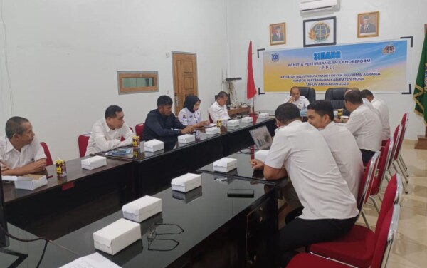 KENDARINEWS.COM–Badan Pertanahan Nasional (BPN) Kabupaten Muna menggelar sidang Panitia Pertimbangan Landreform (PPL) terkait kegiatan redistribusi tanah obyek reforma Agraria (Tora) Pertanahan Kabupaten Muna tahun anggaran 2023. Bertempat di kantor BPN Muna, kemarin.