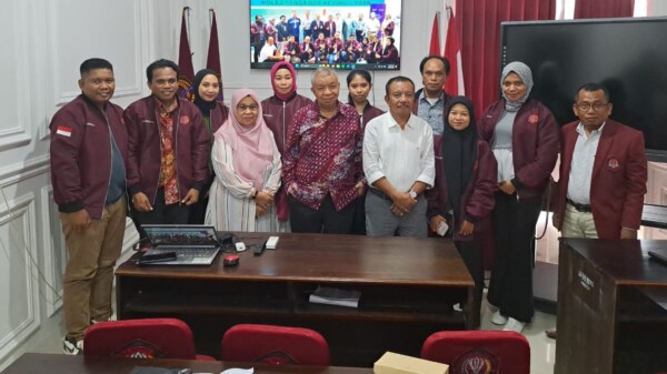 Rektor Unsultra, Prof. Dr. Ir. Andi Bahrun, M.Sc., Agric menerima kedatangan mahasiswa Ilmu Hukum usai belajar di negeri jiran Malaysia, dan Yogyakarta, di ruang rapat Rektorat, Senin (20/3), kemarin.