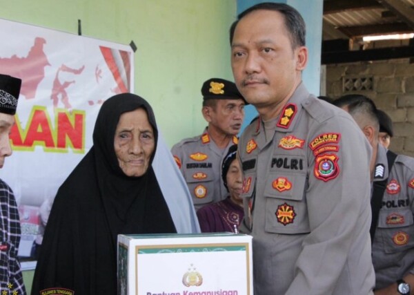 KENDARINEWS. COM — Kepala Kepolisian Resor Konawe Utara (Kapolres Konut) AKBP Priyo Utomo, S.H., S.I.K bersama seluruh Pejabat Utama (PJU) serta Bhayangkari Cabang Polres Konawe Utara menyerahkan Bantuan Sosial (Bansos) Kemanusiaan untuk Negeri kepada warga, Kamis (30/3) siang
