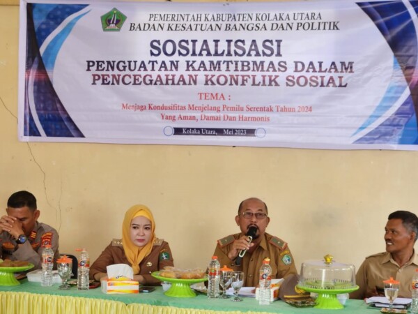 “Langkah penguatan Kamtibmas ini penting dalam mendeteksi lebih dini potensi konflik sosial. Dengan begitu, gesekan-gesekan yang terjadi bisa dicegah dan diselesaikan. Sebagai leading sektor, Kesatuan Bangsa dan Politik (Kesbangpol) harus memantau gejolak politik di masyarakat. Mari kita kawal Pemilu 2024 yang damai, aman dan harmonis sebagaimana tema sosialisasi ini,” ajak mantan Camat Pakue Utara itu. Untuk diketahui, sosialisasi tersebut diikuti kepala desa, tokoh masyarakat, tokoh pemuda dan pemuka agama. Acara itu menghadirkan sejumlah narasumber, diantaranya Kapolres Kolut dan Dandim Kolaka. (mal)