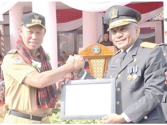 Ketgam : Pj Wali Kota Kendari, Asmawa Tosepu menerima penghargaan dari Kemenkumham Sultra atas kesuksesannya membantu pelaku UMKM mendapatkan legalitas usaha. Penghargaan diserahkan langsung Kakanwil Silvester Sili Laba, kemarin.
