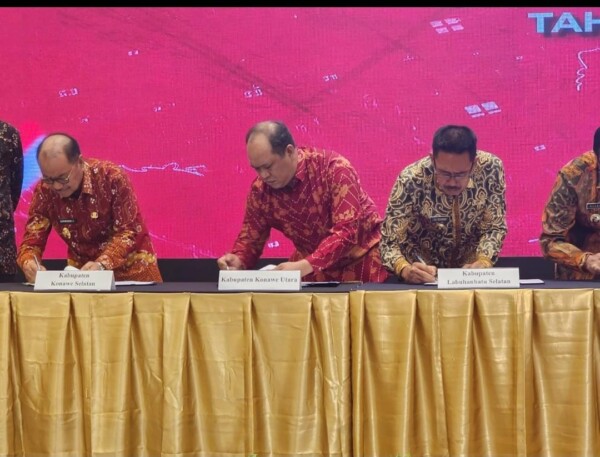 KENDARINEWS.COM–Pemerintah Kabupaten Konawe Utara bersama Direktorat Jenderal Pajak (DJP) dan Direktorat Jenderal Pertimbangan Keuangan (DJPK) menandatangani perjanjian kerja sama optimalisasi pungutan pajak pusat dan daerah di Jakarta, Selasa (22/8). Bupati Konawe Utara Ruksamin hadir langsung menandatangani Surat Perjanjian Kerja Sama. Kerja sama tersebut bermuara menstimulus pendapatan daerah maupun negara.