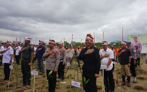 KENDARINEWS.COM– Wakil Kepala Kepolisian Daerah (Wakapolda) Sulawesi Tenggara (Sultra) Brigjen Dwi Irianto bersama Forkopimda dan Pj. Wali Kota Kendari melakukan penanaman mangrove di pesisir Teluk Kendari, Kelurahan Watu-watu, Rabu (23/8).