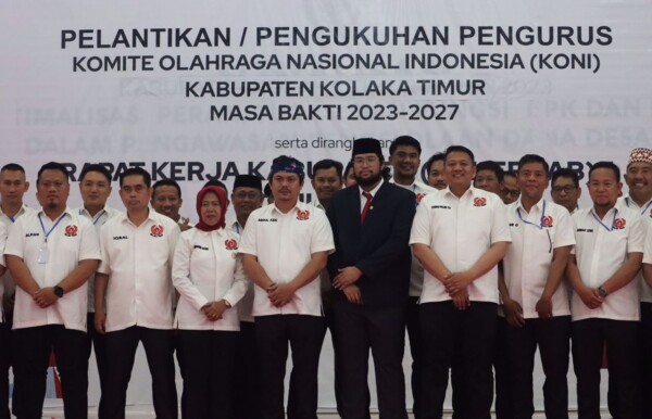 KENDARINEWS.COM–Kepengurusan Komite Olahraga Nasional Indonesia (Koni) Kolaka Timur periode 2023-2027, resmi dikukuhkan Ketua KONI Provinsi Sulawesi Tenggara, Alvian Taufan Putra.