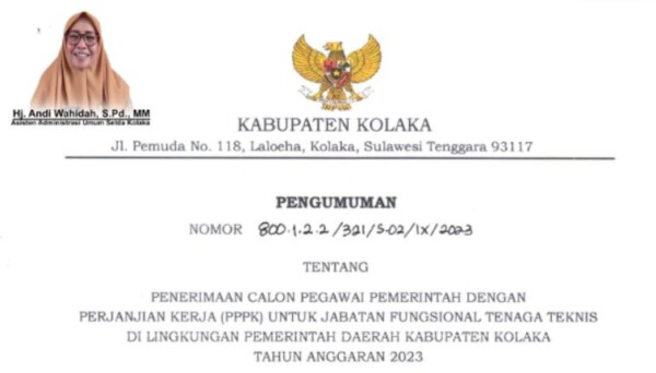 PENGUMUMAN SELEKSI PPPK JABATAN FUNGSIONAL TENAGA TEKNIS PEMKAB KOLAKA TAHUN 2023
