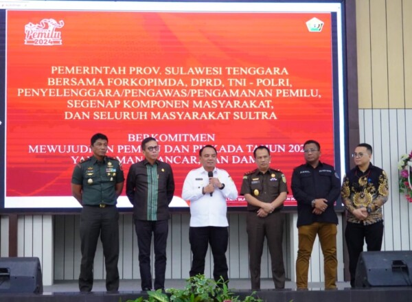 “Pemerintah Provinsi Sulawesi Tenggara bersama Forkopimda, DPRD, TNI-Polri, Penyelenggara, Pengawas dan Pengamanan Pemilu, serta segenap komponen masyarakat, dan seluruh masyarakat Sultra berkomitmen mewujudkan Pemilu dan Pilkada tahun 2024 yang aman, damai dan lancar sehingga dapat berkontribusi dalam mendukung terselenggaranya pembangunan nasional di Sulawesi Tenggara,” tandas Andap.