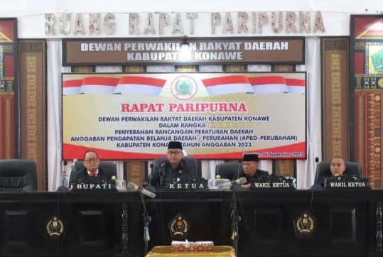 KENDARINEWS.COM–Harmin Ramba memulai agenda perdana pasca dilantik sebagai Pj Bupati Konawe dengan menghadiri rapat paripurna pembahasan APBD-Perubahan tahun 2023, Selasa (26/9).