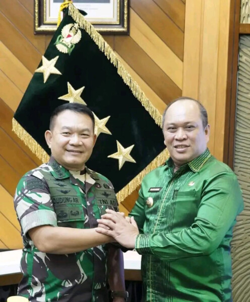 KENDARINEWS.COM — Bupati Konawe Utara, Dr. Ruksamin menghadiri undangan langsung Kepala Staf Angkatan Darat (Kasad) Jenderal TNI Dr. Dudung Abdurachman, di Markas Besar TNI Angkatan Darat di Jakarta, Selasa, 3 Oktober 2023. Ruksamin menemui Jenderal Dudung tidak sendiri. Bersamanya, ada Kadis Pendidikan, Kabag Kerja Sama, Kabag Ekonomi, dan Kabag Tata Pemerintahan Kabupaten Konawe Utara.