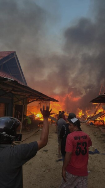 KENDARINEWS.COM–Pasar Sentral Wakuru, Kecamatan Tongkuno Kabupaten Muna terbakar, Selasa (10/10) pukul 17.20 Wita. Dengan cepat api menghanguskan ratusan kios para pedagang.