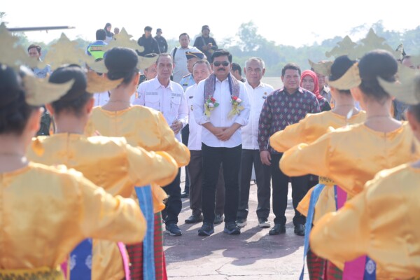 Setibanya di bandara, Menteri ATR/BPN disambut tarian mondotambe dan pengalungan bunga. Plt Bupati Kolaka H Muhammad Jayadin dan sejumlah pimpinan OPD dan forkopimda yang ada di Kabupaten Kolaka terlihat menyambut kedatangan Menteri Hadi di bandara.