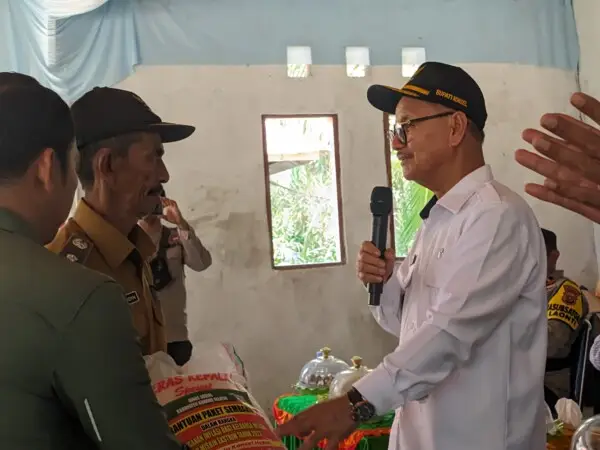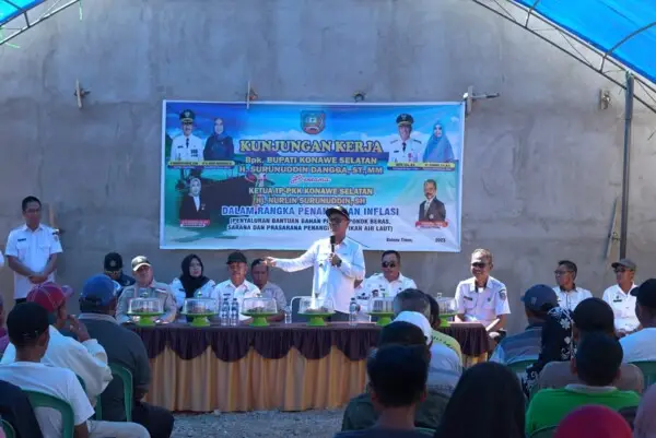 Bupati Surunuddin tak datang dengan tangan kosong. Dalam rangka penanganan inflasi, pihaknya menyalurkan bantuan bahan pokok beras, dan lainnya. Juga khusus dari Dinas Perikanan menyalurkan sarana dan prasarana penangkapan ikan air laut, Rabu (15/11) kemarin.