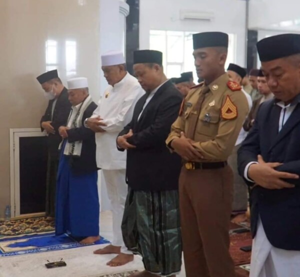 KENDARINEWS.COM—Pj. Wali Kota Kendari Muhammad Yusup bersama Sekda Kota Kendari Ridwansyah Taridala melaksanakan Salat Idulfitri 1 Syawal 1445 Hijriah di Masjid Akbar Korem 143/HO Kendari di Kecamatan Kendari Barat, Rabu (10/4/2024).