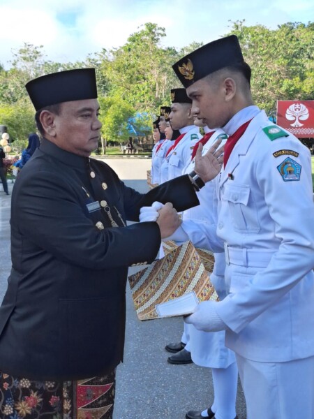 Upacara ini dipimpin oleh Penjabat (Pj) Gubernur Sultra, Andap Budhi Revianto, yang bertindak sebagai Inspektur Upacara.