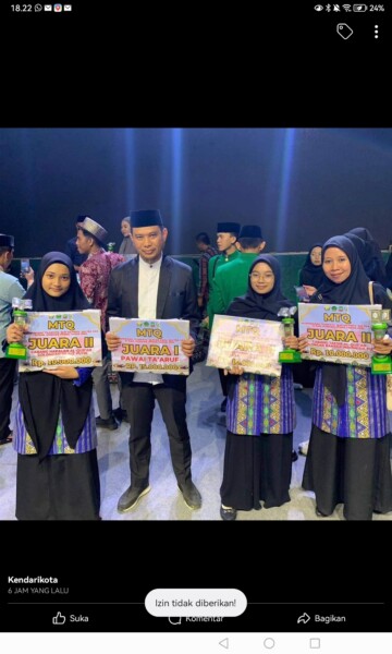 KENDARINEWS.COM– – Kota Kendari kembali menunjukkan prestasinya dengan meraih juara 2 dalam Musabaqah Tilawatil Quran (MTQ) ke-30 tingkat Provinsi Sulawesi Tenggara (Sultra) yang diselenggarakan di Kabupaten Konawe Utara (Konut).