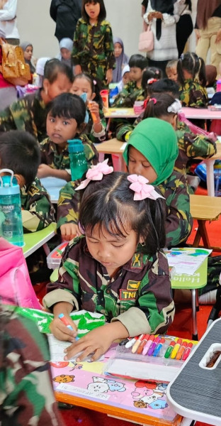 ” Jadi ini yang pertama kali untuk anak anak ini. Jika tahun lalu anak anak didik kami banyak yang berprestasi dalam.lomba mewarnai, semoga yang ini juga seperti itu, ” ujar Bu Guru Sumi.