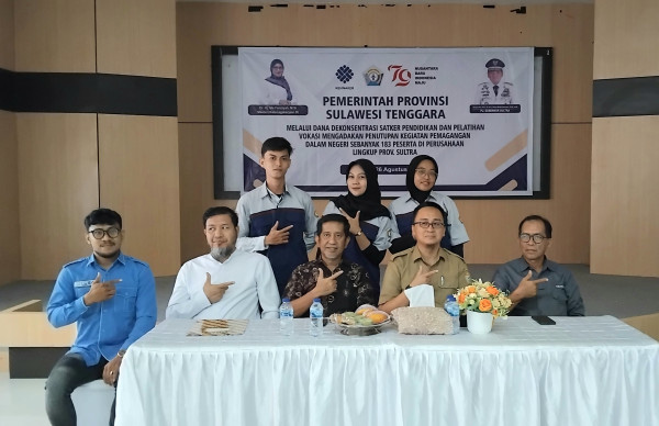Kepala Dinas Disnaker Sultra dalam hal ini diwakili oleh Mahaseng Mustafa selaku Ketua Forum Jejaring Kemagangan Sultra, memberikan apresiasi kepada seluruh peserta yang telah berhasil menyelesaikan program pemagangan ini.
