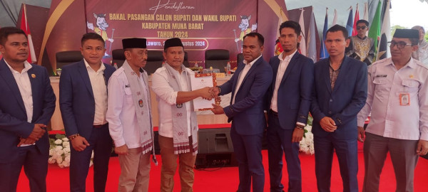 “Pasangan bakal calon bupati dan wakil bupati yang mendaftar (La Ode Darwin – Ali Basa), dokumen persyaratan calon dan dokumen syarat calon dinyatakan lengkap dan diterima,” kata Ketua KPU Mubar, La Tajudin.