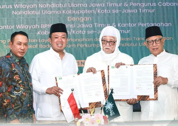 “Ini untuk percepatan sertipikasi hak atas tanah yang dimiliki NU secara struktural dan komunitas keagamaan berbasis NU di Jawa Timur. Kita mendorong pendaftaran, pemetaan, dan sertipikasi tanah di tiap kabupaten/kota. Keluarga besar NU juga mempunyai kepentingan untuk menyelamatkan aset-aset tanah yang dimiliki supaya ke depan mempunyai kepastian hukum dan tidak menimbulkan sengketa dan konflik tanah,” ujar Menteri Nusron di Kantor Pengurus PWNU di Kota Surabaya.