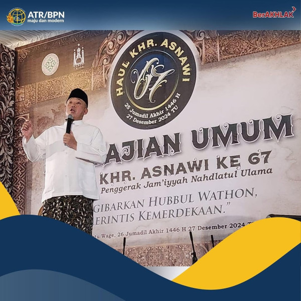 Kendarinews. com—Menteri Agraria dan Tata Ruang/Kepala Badan Pertanahan Nasional (ATR/BPN), Nusron Wahid menghadiri Haul ke-67 K.H. Raden Asnawi, di Kudus, Jumat (27/12/2024) malam. Sebagai alumni Qudsiyyah, Nusron Wahid menyoroti perjuangan dan dedikasi K.H. Raden Asnawi sebagai ulama yang tidak hanya berkontribusi di bidang keilmuan agama, tetapi juga dalam perjuangan kemerdekaan dan pengabdian kepada umat.
