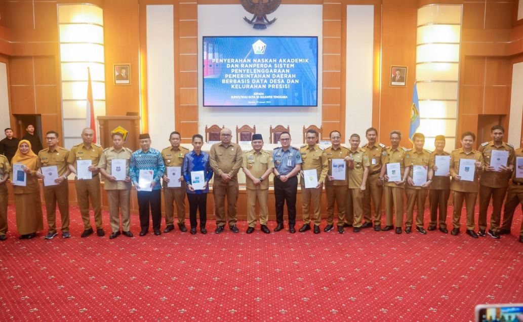 Kendarinews.com – Dalam sebuah langkah besar menuju tata kelola pemerintahan yang lebih presisi, Penjabat (Pj.) Gubernur Sulawesi Tenggara (Sultra), Andap Budhi Revianto, menyerahkan Naskah Akademik dan Draf Rancangan Peraturan Daerah (Ranperda) tentang Sistem Penyelenggaraan Pemerintahan Daerah Berbasis Data Desa/Kelurahan Presisi (DDP). Acara ini berlangsung di Ruang Pola Kantor Gubernur dan dihadiri oleh Bupati dan Wali Kota se-Sultra.