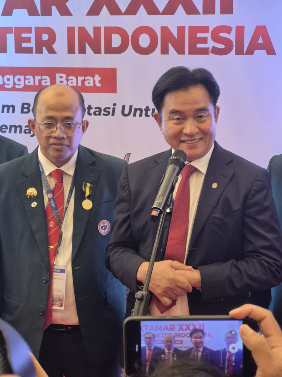 KENDARINEWS.COM-Muktamar Ikatan Dokter Indonesia (IDI) ke-32 resmi dibuka Prof. Dr. Yusril Isa Mahendra, SH. MH, Menteri Koordinator (Menko) Bidang Hukum, HAM, Imigrasi, dan Pemasyarakatan Indonesia, Kamis (13/2/2025).