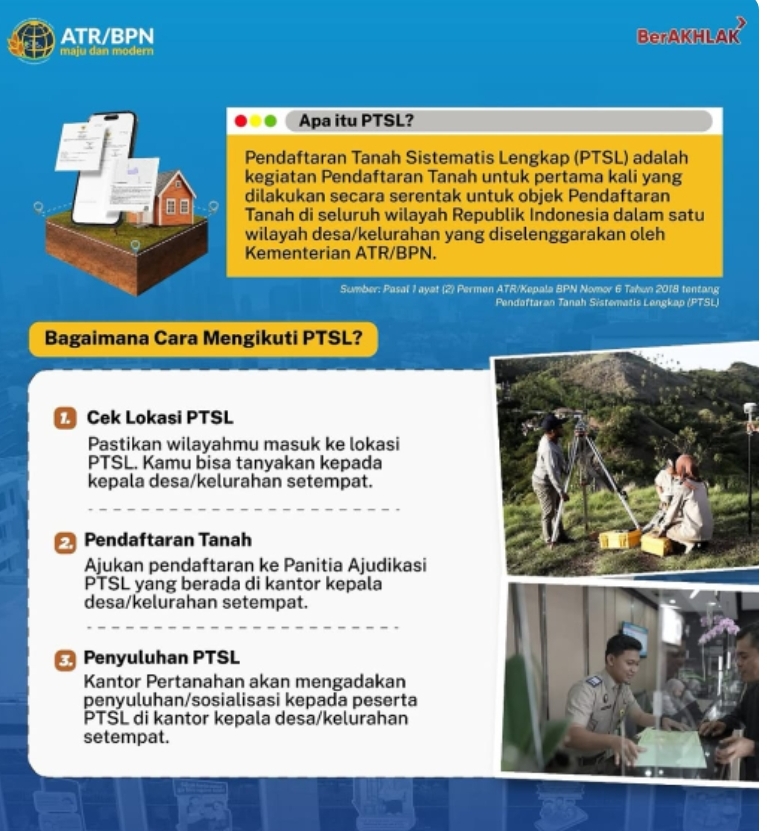 Kini saatnya tingkatkan menjadi Sertipikat Elektronik, karena pendaftarannya mudah salah satunya melalui Pendaftaran Tanah Sistematis Lengkap (PTSL), loh!