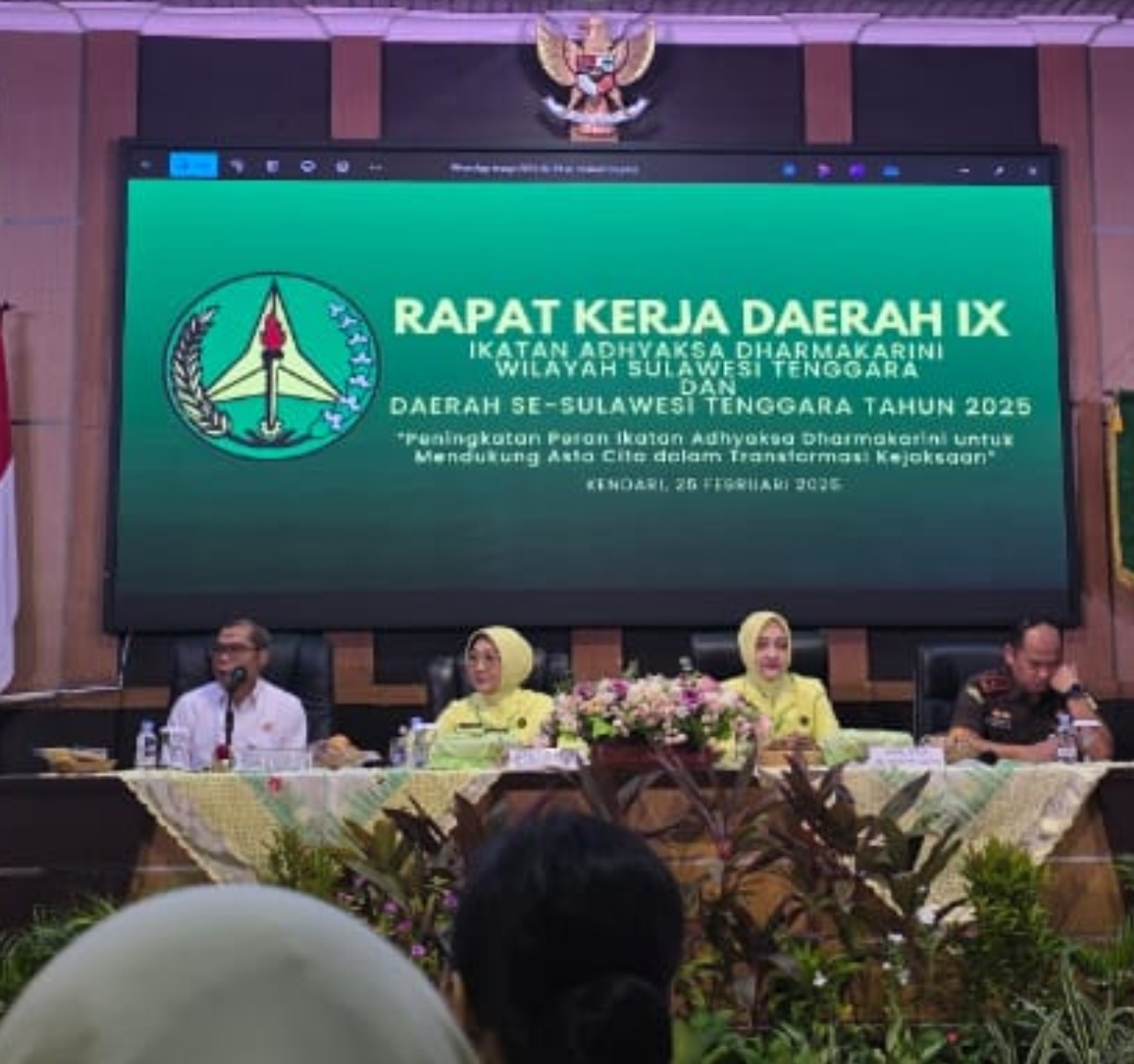KENDARINEWS.COM—Pengurus Ikatan Adhyaksa Dharmakarini (IAD) Wilayah se-Sulawesi Tenggara menggelar Rapat Kerja Daerah (Rakerda) IX di Aula Kejaksaan Tinggi Sulawesi Tenggara (Sultra), Selasa (25/2/2025). Kegiatan ini mengangkat tema: Peningkatan Peran Ikatan Adhyaksa Dharmakarini Untuk Mendukung Asta Cita Dalam transformasi Kejaksaan.