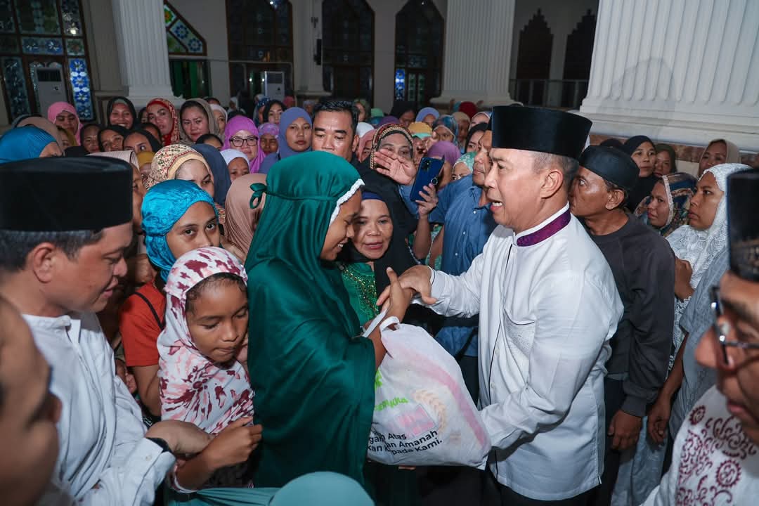 Setelah melaksanakan salat tarawih berjamaah Gubenur ASR menyerahkan bantuan bahan pangan pokok kepada masyarakat sebagai bentuk kepedulian terhadap kebutuhan mereka, terutama di bulan Ramadan. Bantuan tersebut diharapkan dapat meringankan beban masyarakat dalam memenuhi kebutuhan pangan selama menjalankan ibadah puasa.