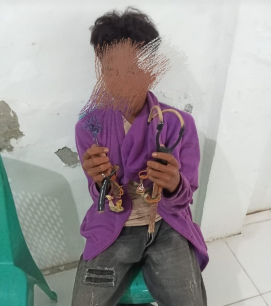 Pada sekitar pukul 05.30 WITA, petugas patroli gabungan menemukan barang bukti berupa 3 (tiga) buah ketapel dan 1 (satu) mata busur yang dibawa oleh seorang pelaku yang diketahui berinisial MA (15), Bertempat Tinggal di Kelurahan Kampung Sallo, Kecamatan Kendari, Kota Kendari